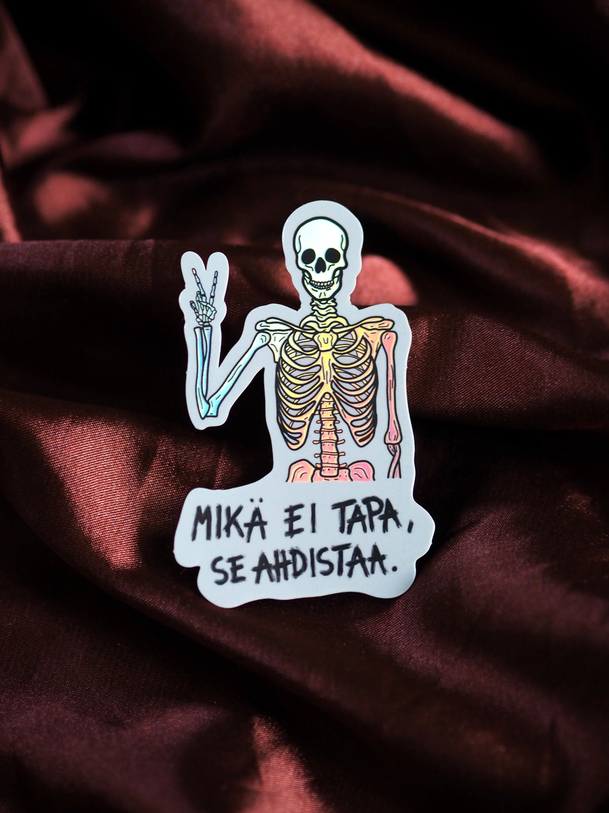 MIKÄ EI TAPA SE AHDISTAA holograafinen luurankotarra